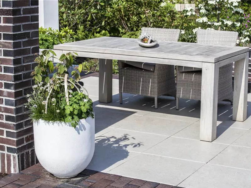 Weitere wichtige Kriterien sind die Wetter- und UV-Beständigkeit. Regen, Wind, Hitze und Kälte dürfen den robusten Tischen und Stühlen nichts anhaben – erst recht nicht, wenn sie den ganzen Winter über draußen bleiben müssen. Falls es keinen Überwinterungsplatz im Keller gibt, sollten sie wenigstens mit einer Schutzhülle abgedeckt werden. Wer eine platzsparende Variante benötigt, wählt stapelbare Stühle (sind schnell weggeräumt, wenn sie nicht gebraucht werden) oder Bänke.