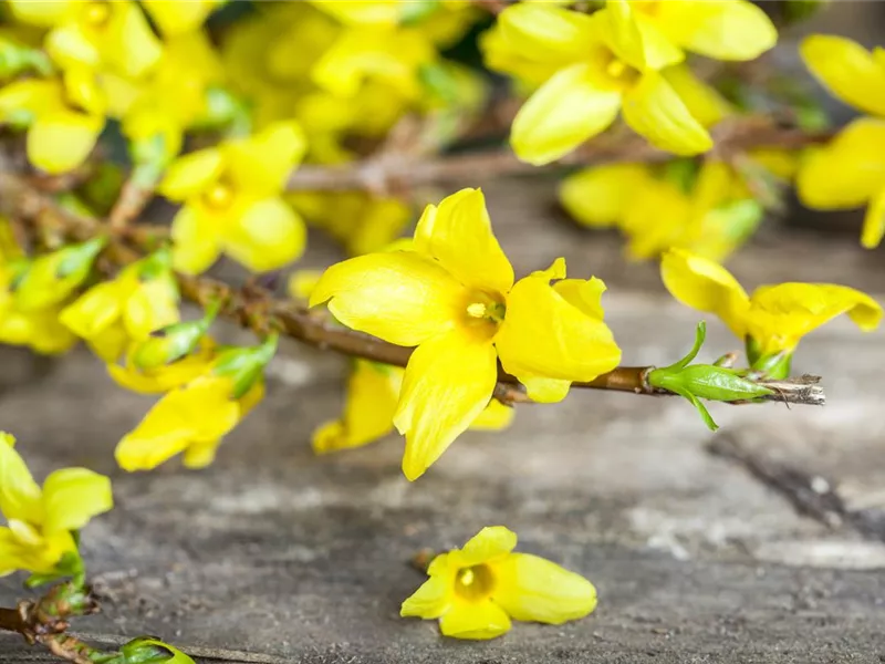 Die Forsythie gehört zu den beliebtesten frühblühenden Gehölzen. Kein Wunder, denn die gold-gelben Blüten der Pflanze sind im Frühjahr ein echter Hingucker. Und obwohl die Forsythie eine fernöstliche Schönheit ist, fühlt sie sich hierzulande auch sehr wohl.