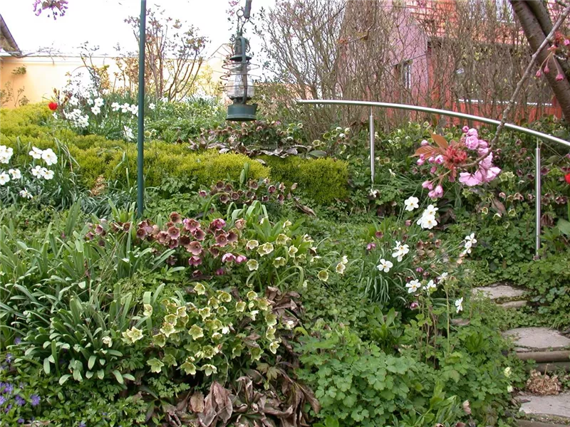 Klassisch stehen im Cottage Garden Clematis, Rittersporn, Fingerhut, Nachtkerze, Iris, Mohn, Dahlien, Lupinen, Calendula, Veilchen, Margeriten, Vergissmeinnicht aber auch alle blühenden Kräuter. Alle Zwiebelgewächse, wie die Küchenzwiebel, Knoblauch, Tulpe und Co., aber auch Zierlauch, Frauenmantel und Akelei.