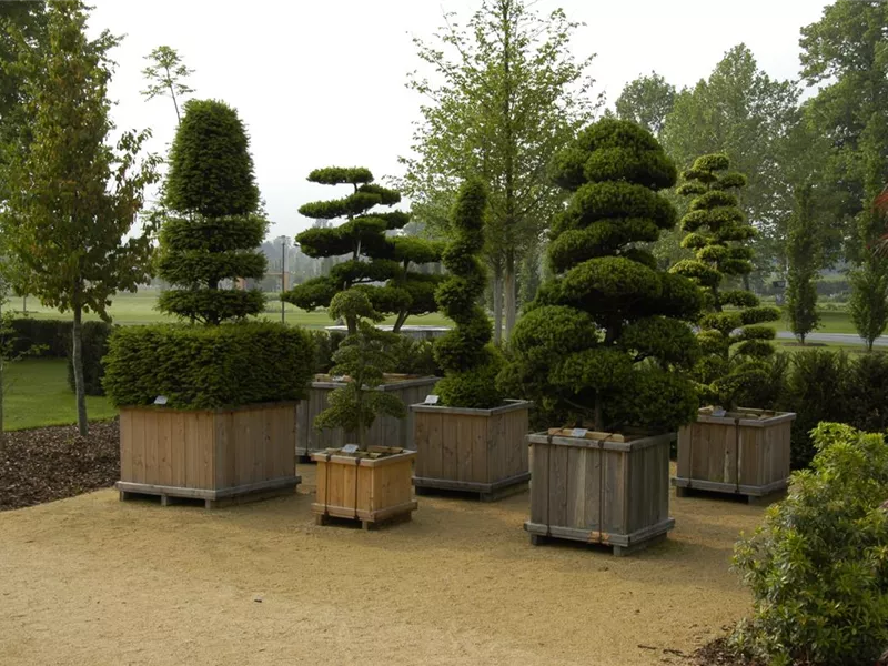 Formgehölze sind auch oft an öffentlichen Orten zu finden. Parks nutzen Formgehölze als Möglichkeit, Flächen mit vielen Gehölzen zu bestücken, ohne, dass es langweilig wirkt. Typische Beispiele sind da Ornamente oder gar komplette Labyrinthe. Da sich ein Labyrinth im eigenen Garten nur schwer umsetzen lässt und es wahrscheinlich an reichlich Platz mangelt, denkt der Gärtner beim Thema Formgehölze natürlich etwas kleiner. Ein einzelnstehender Baum hier, ein kleiner Busch im bunten Blumenbeet. Es muss nicht immer ein großer Park sein. Ein Weg durch den Garten lässt sich perfekt mit Formgehölzen einrahmen. Außerdem sind Formgehölze ideal dafür geeignet, weniger schöne Ecken im Garten zu kaschieren. Wächst an einer Stelle der Rasen nicht richtig? Einfach ein Formgehölz in der Nähe platziert und schon zieht das Formgehölz den Blick auf sich und weg von der kahlen Stelle im Rasen.